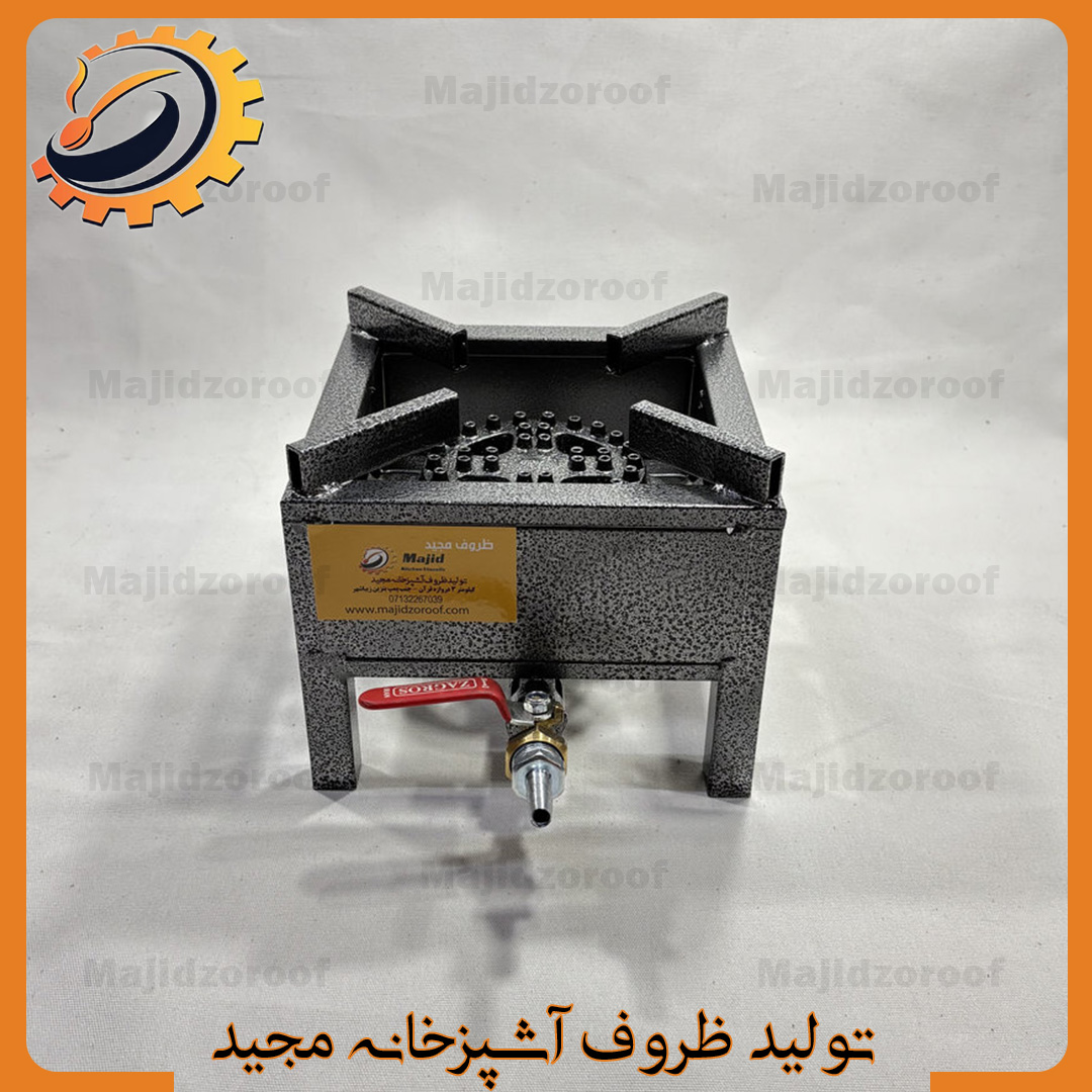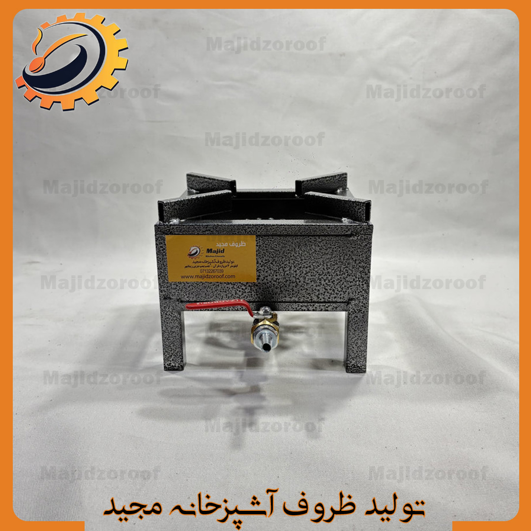 اجاق گاز (پلوپز) تکشعله ۲۰×۲۰ با سنگ ۱۲ سانتیمتری برند مجید – مناسب پختوپز ۱ تا ۲ نفره