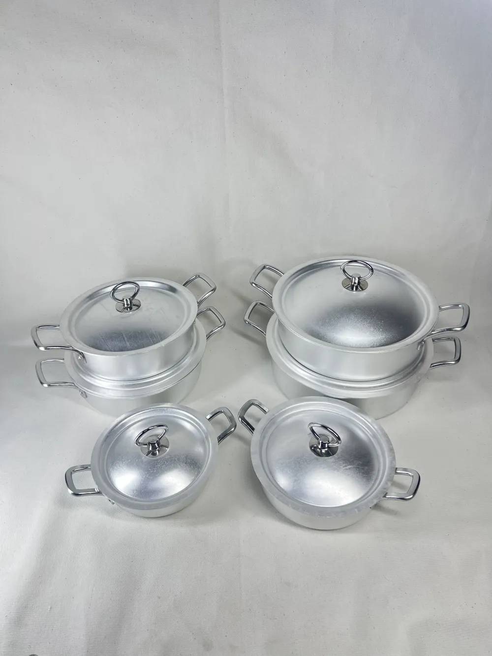 سرویس ۱۲ پارچه ماهیتابه روحی تاپ آلومین دستهدار، یکی از کاملترین انتخابها برای آشپزخانه است. این سرویس با بهرهگیری از آلومینیوم خالص (روحی) کیفیت پخت بینقصی ارائه میدهد. وجود دستهدار بودن باعث میشود جابهجایی آسانتر باشد و در استفاده روزمره راحتی بیشتری فراهم کند.